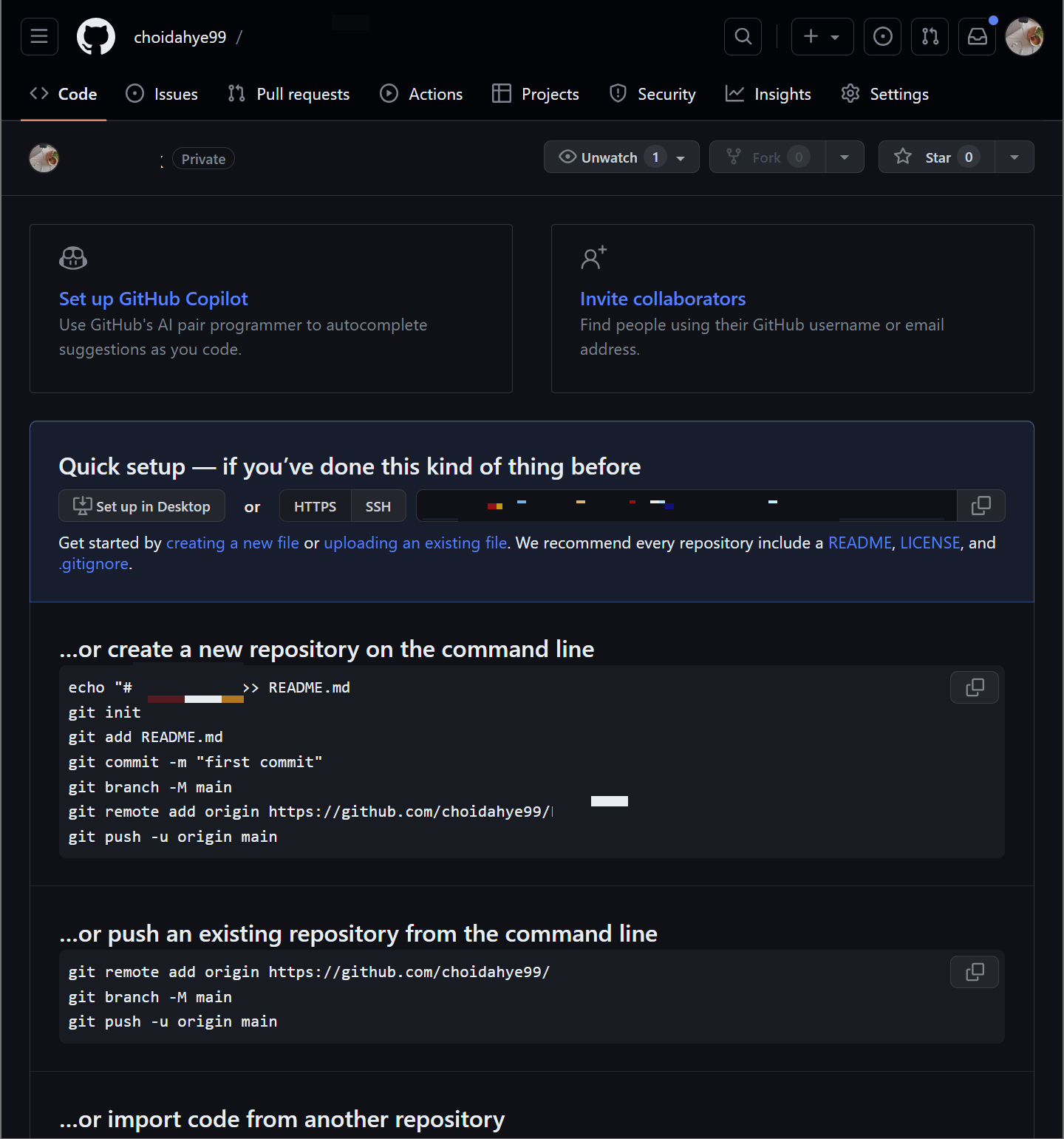 이 화면이 뜨면 된다. (습관처럼 readme 추가 체크했다가 충돌난 사람..🥲