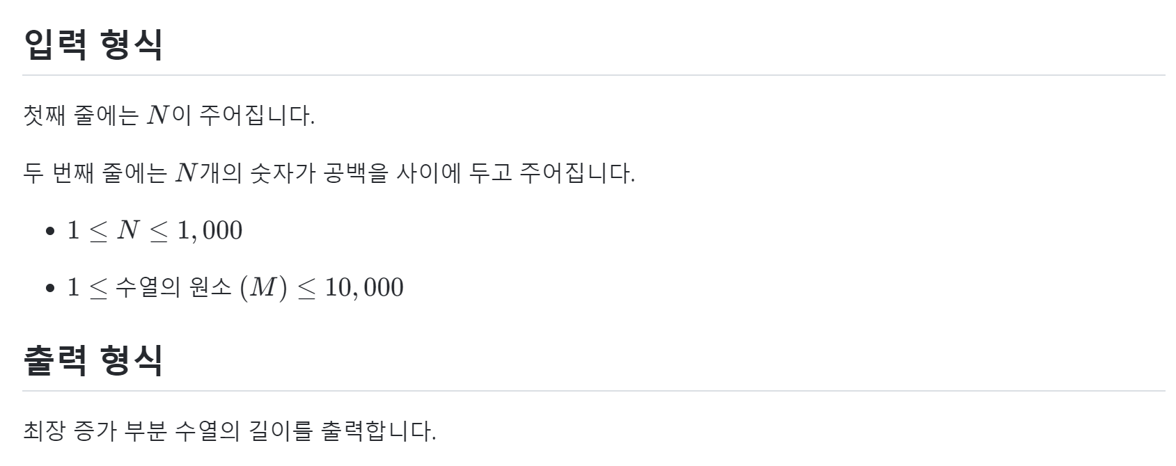✅ dp 배열을 완성한 후, dp 배열의 값 중 최대값이 최대증가수열의 개수이므로 max(dp) 출력한다