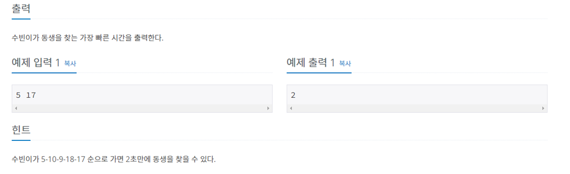 수빈이가 현재 있는 위치 N에서 동생이 있는 위치 K까지 가는데 필요한 가장 빠른 속도를 출력하라