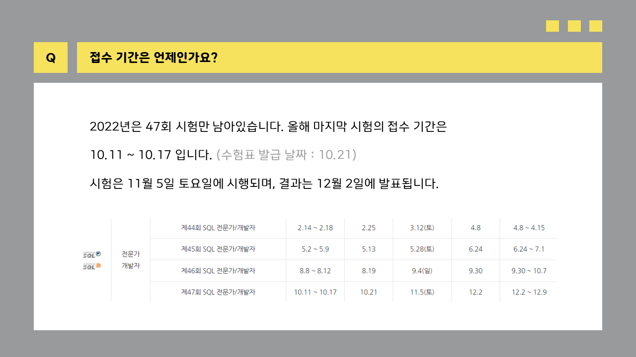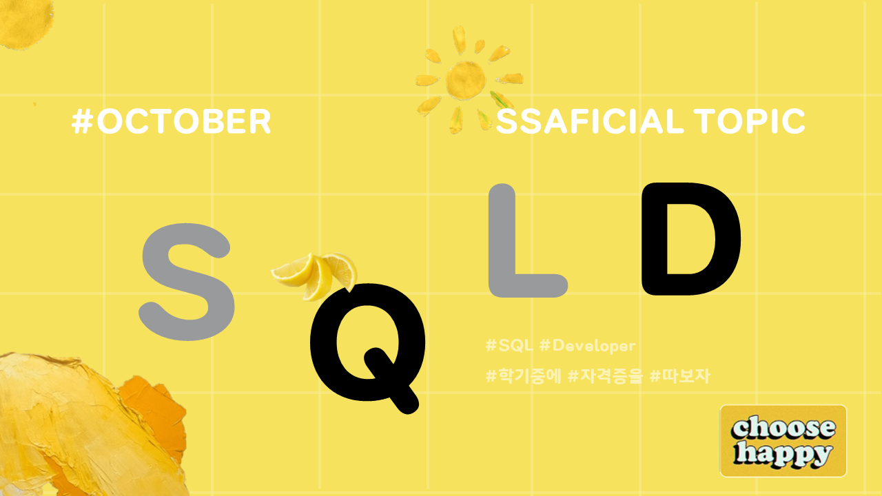 10월의 토픽은 데이터 직종을 생각해본 사람은 들어본 적 있을 바로 이 자격증! SQLD를 소개하는 시간을 가져보고자 합니다.