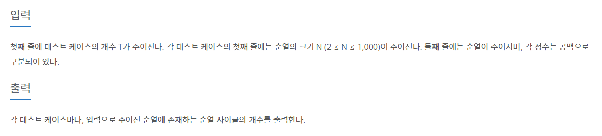 N개의 정수로 이루어진 순열이 주어졌을 때, 순열 사이클의 개수를 구하는 프로그램을 작성하시오.