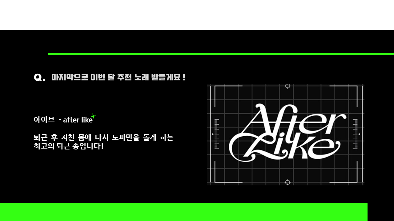 Q. 마지막으로 이번달 추천 노래 받을게요!