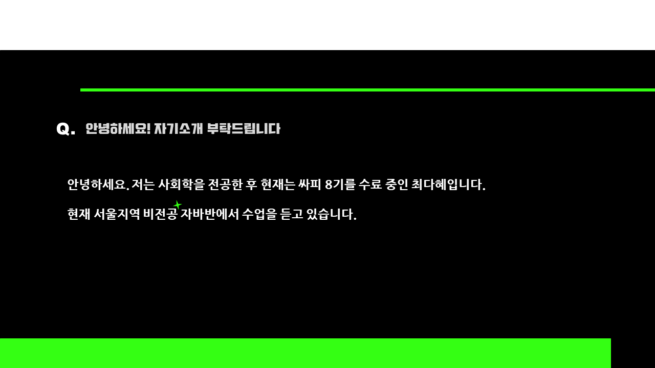 Q. 안녕하세요! 자기소개 부탁드립니다