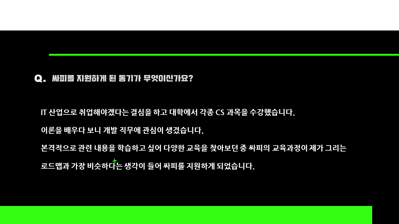 Q. 싸피를 지원하게 된 동기가 무엇이신가요?