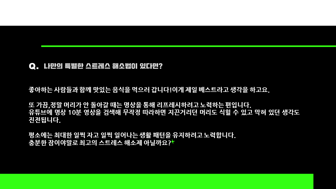 Q. 나만의 특별한 스트레스 해소법이 있다면?