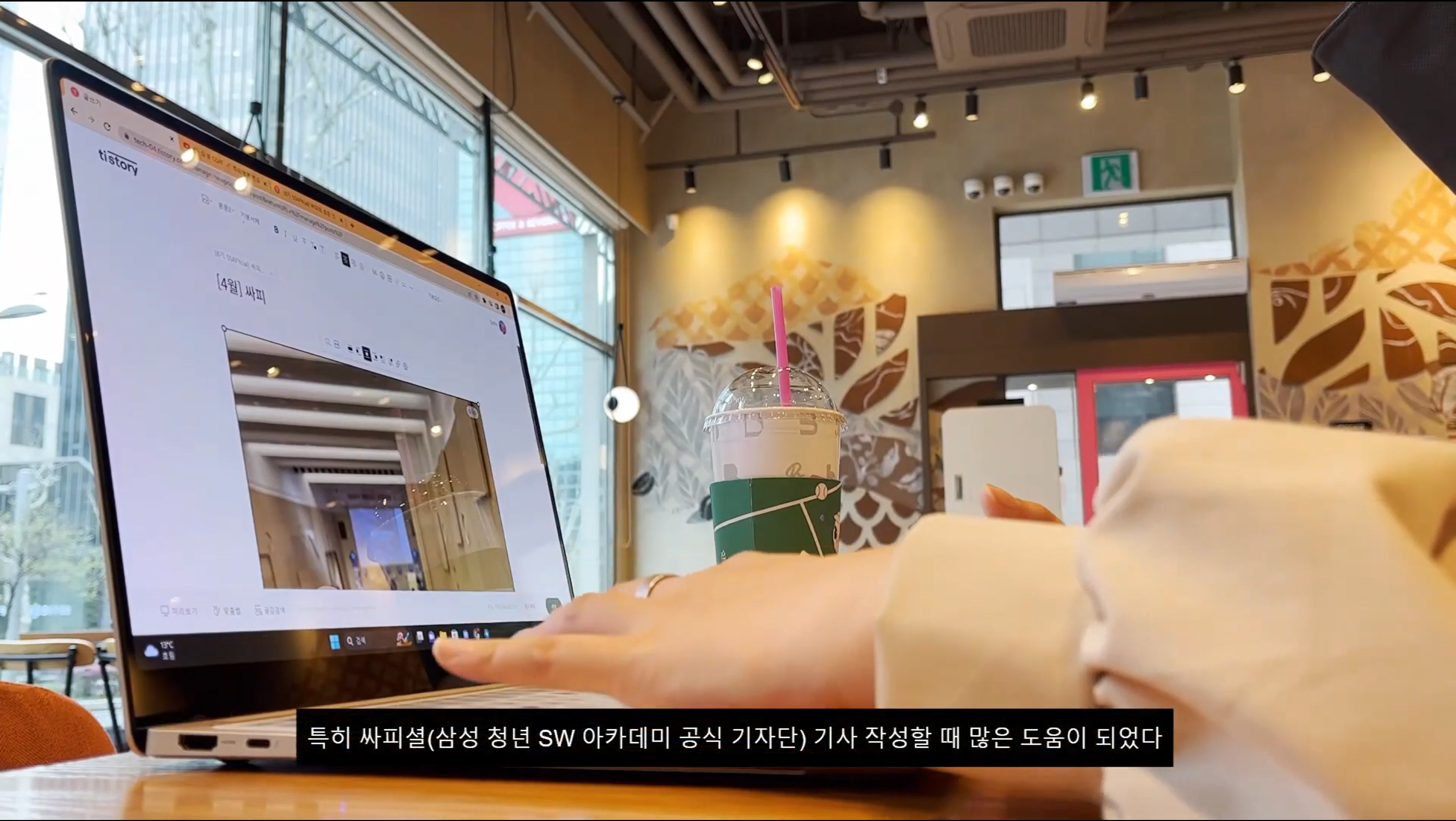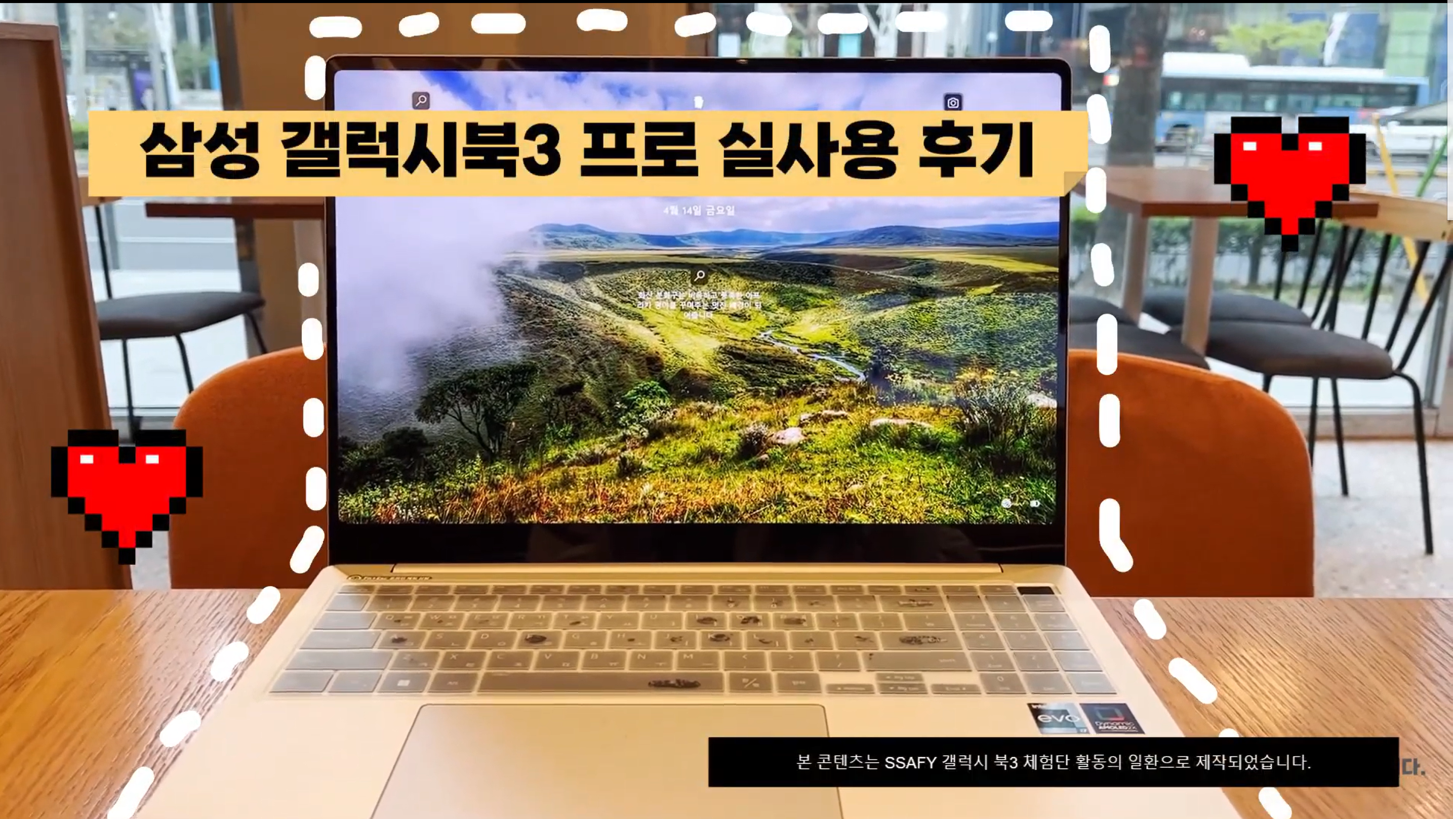 저는 삼성 청년 SW 아카데미 기자단인 SSAFYcial (싸피셜)을 하고 있어서 노트북을 들고다녀야 하는 경우가 많았습니다. 예전 노트북을 사용할 땐 백팩 필수에 어깨 뭉치기는 예삿일이었답니다... 그와중에 화면은 13인치 ㅎ.... 갤럭시북3 프로를 사용하고 나서 가장 처음 행복했던 순간이 바로 선명하고 큰 화면을 이용해 기사 작성할 때 + 크로스백으로 가지고 다닐 때 였답니다 흑흑 갤럭시북3로 4월 기사도 무사히 작성했습니다 :)